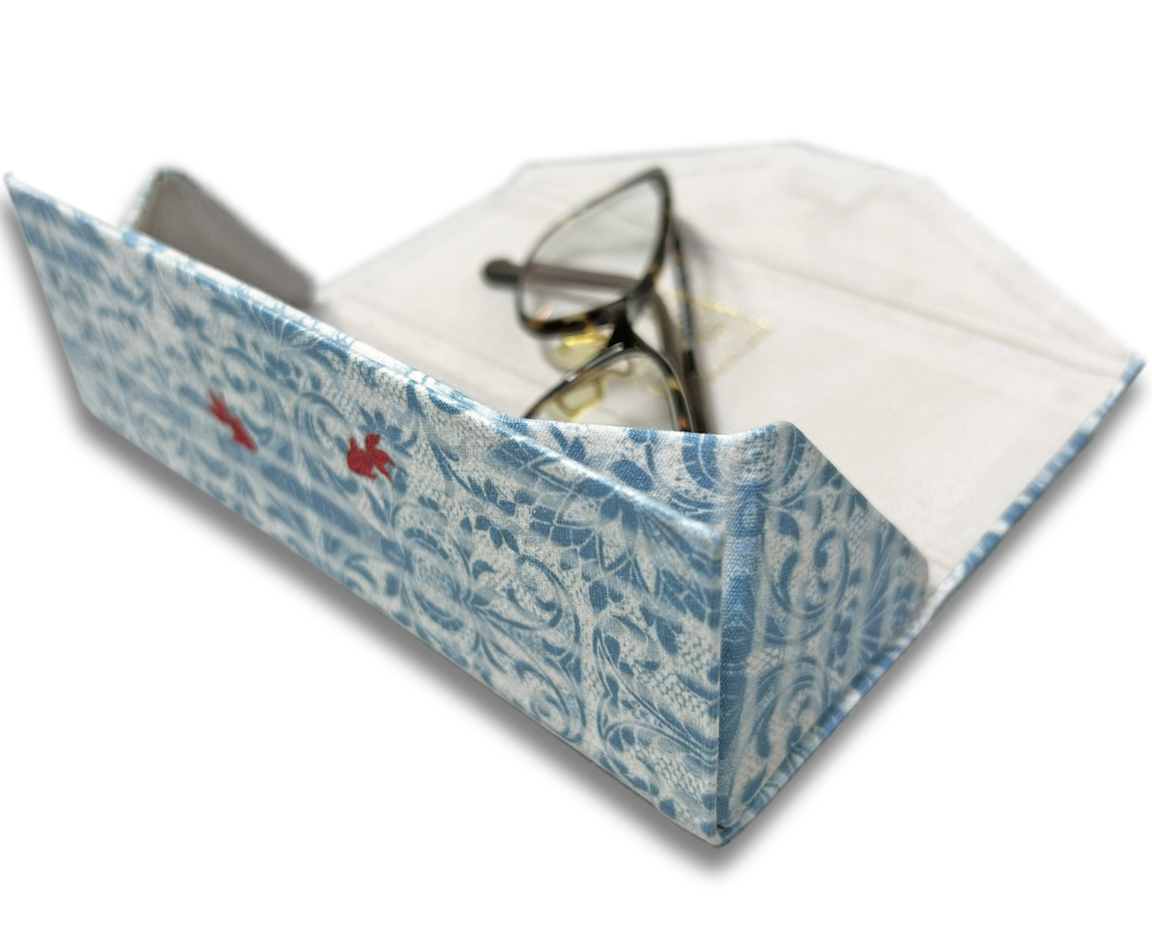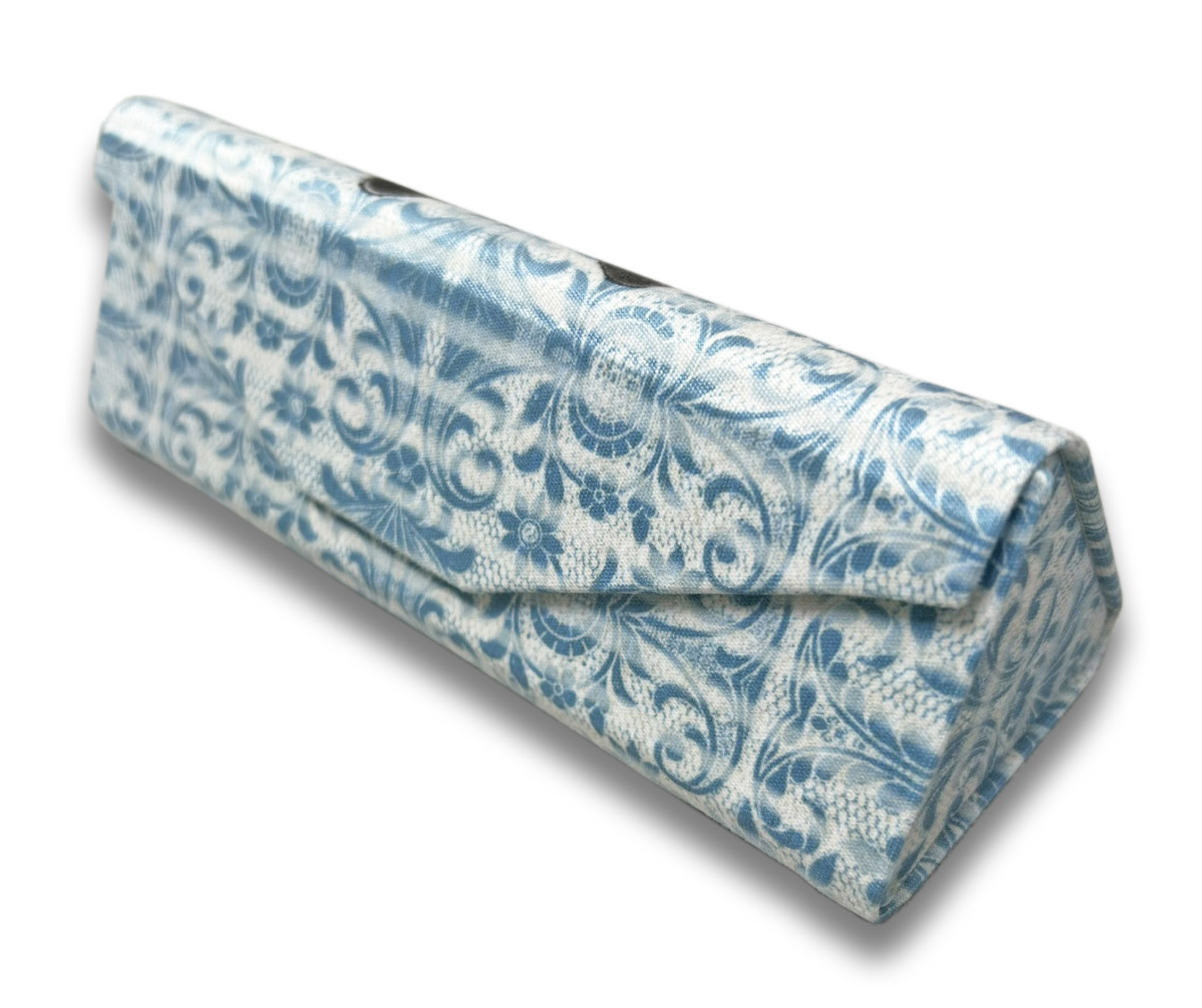 三角の形がかわいいメガネケース。 コンパクトに折りたためて 持ち運びに便利。